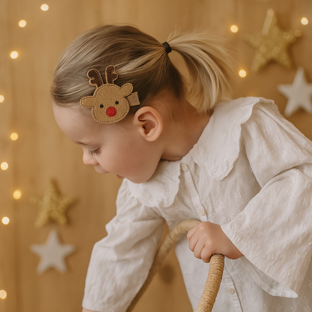 Dit leuke lederlook speldje met rendier is perfect voor de kerstdagen en echt een feestje voor in het haar!