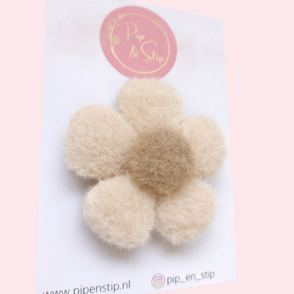 Een alligator haarspeldje met zachte bloem in lichte kleuren. Combineer het met een gebreid jurkje of een wollen truitje voor de ultieme winterstijl
