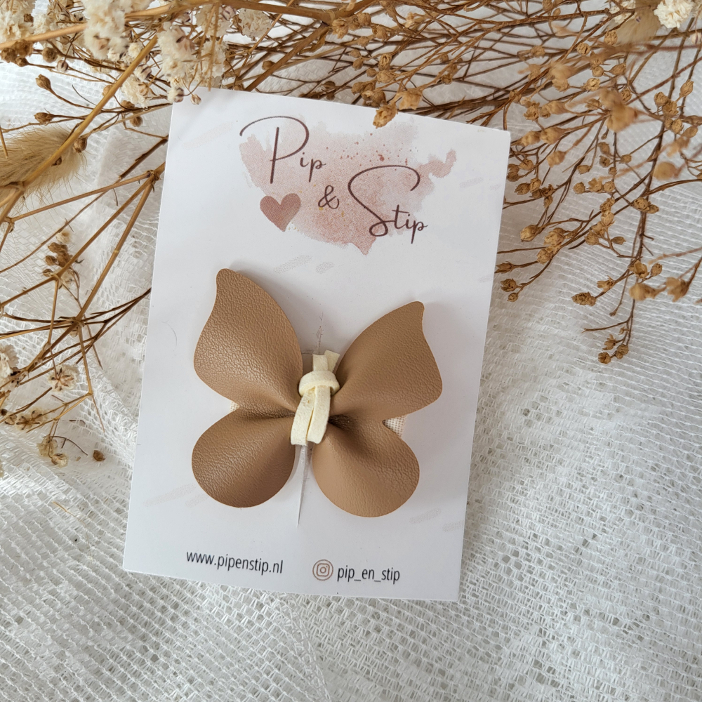 Een alligator haarspeld met een lederlook vlinder.