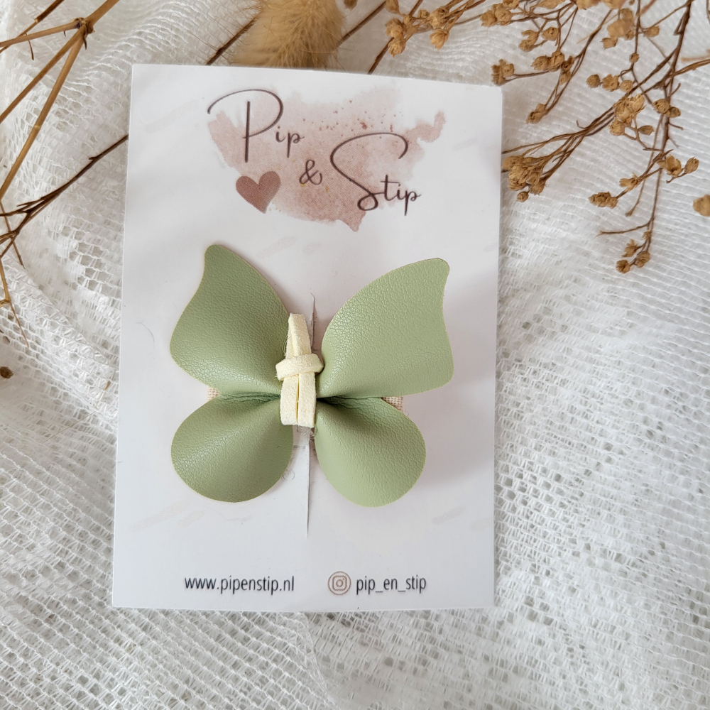 Een alligator haarspeld met een lederlook vlinder.