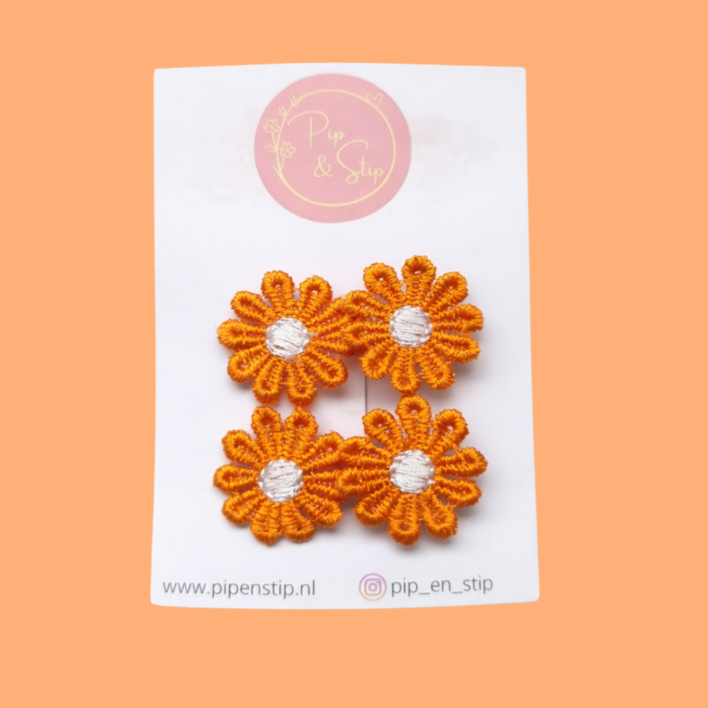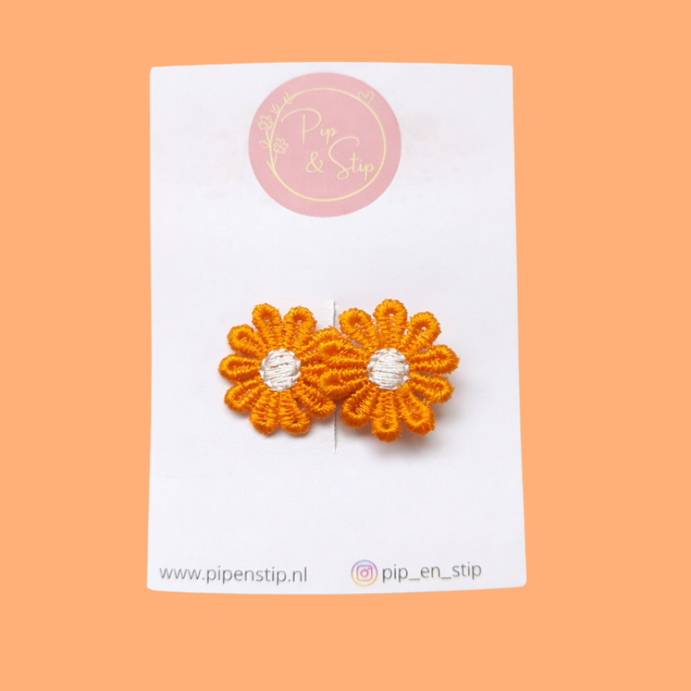Met dit vrolijke alligator haarspeldje met oranje bloemetjes is jouw kleintje helemaal klaar voor Koningsdag! De haarspeldjes zijn met de hand gemaakt en zorgen voor een feestelijke en speelse look.