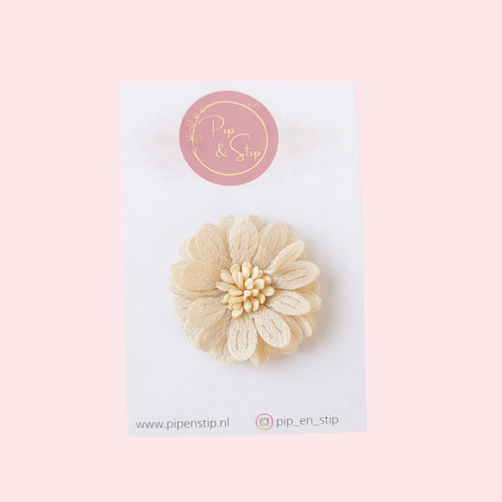 De tandjes zorgen ervoor dat het speldje goed blijft zitten, ook bij fijn peuter- en kleuterhaar. Je kunt kiezen uit speldjes in zilver of goud, zodat je ze mooi kunt afstemmen op de kleur van de bloem of de outfit.