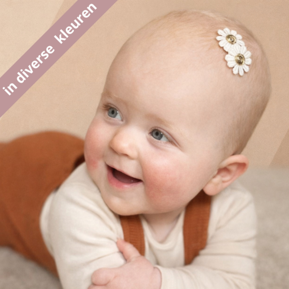 Zie je allemaal leuke haarspeldjes maar blijven ze niet goed zitten in de dunne, korte haartjes van je kleintje? De antislip haarspeldjes zijn dan de ideale oplossing! De handgemaakte haarspeldjes met madeliefjes staan super leuk in het haar.