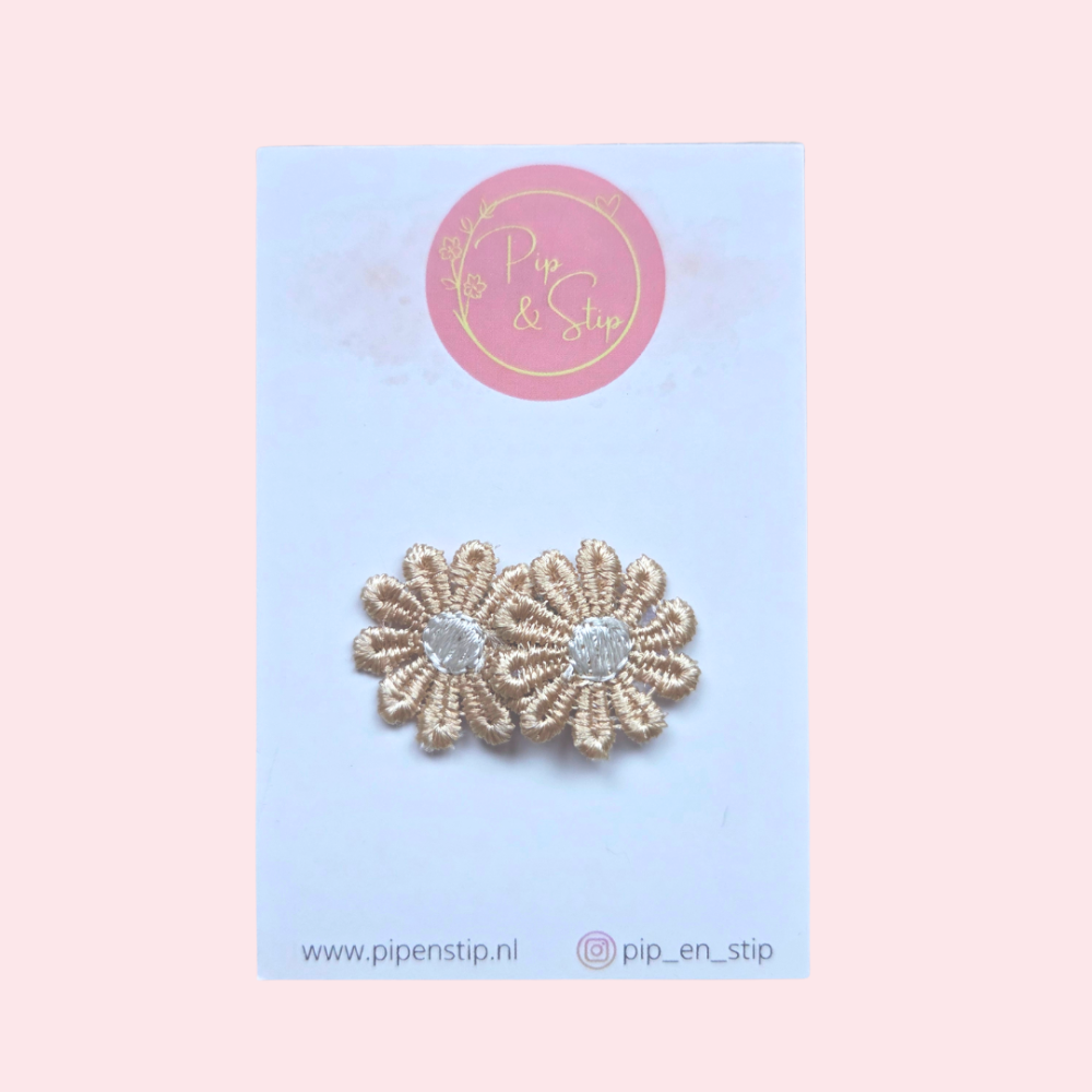 Je shopt de antislipspeldjes per stuk of per 2 met zachte madeliefjes in mooie kleuren als wit, beige, roze, paars, geel, brons en goud. Een zachte uitstraling dus perfect voor elke dag of bij een speciale outfit.