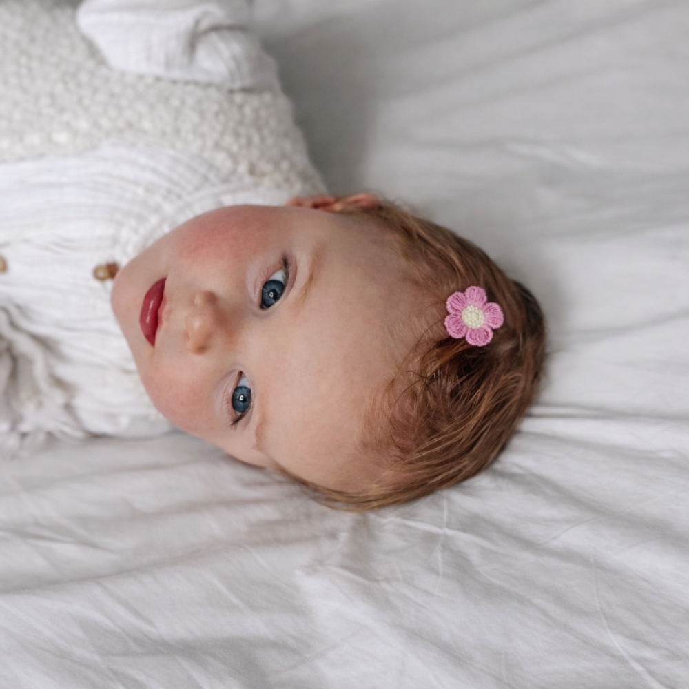 Zie je allemaal leuke haarspeldjes maar blijven ze niet goed zitten in de dunne, korte haartjes van je kleintje? De antislip haarspeldjes zijn dan de ideale oplossing! De handgemaakte haarspeldjes met bloemetjes staan super leuk in je haar.