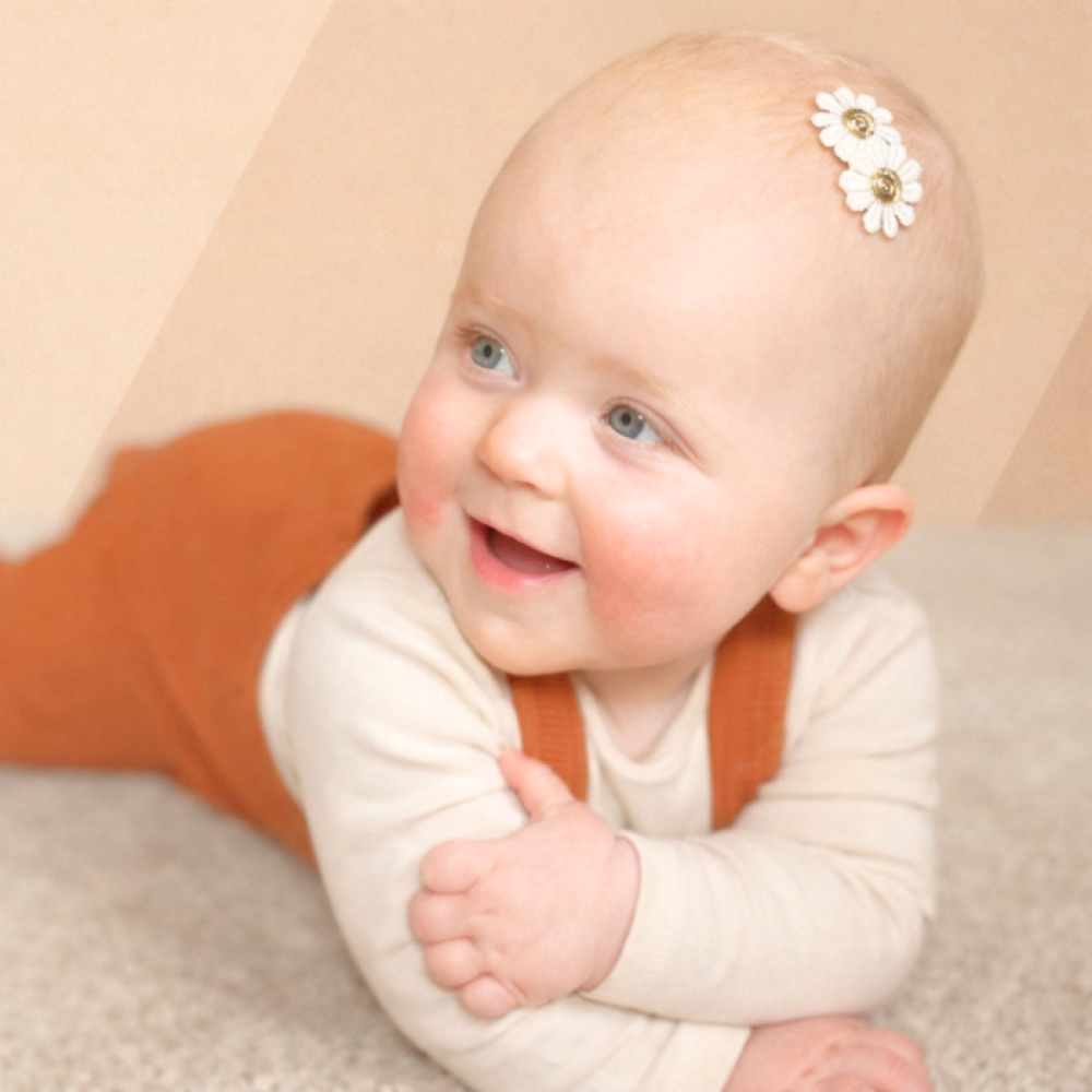 De antislip haarspeldjes zijn speciaal ontworpen voor de allerkleinsten. Dankzij het stevige antisliplaagje blijven ze perfect zitten, zelfs in de kortste babyhaartjes. De speldjes zijn ongeveer 3 cm groot.
