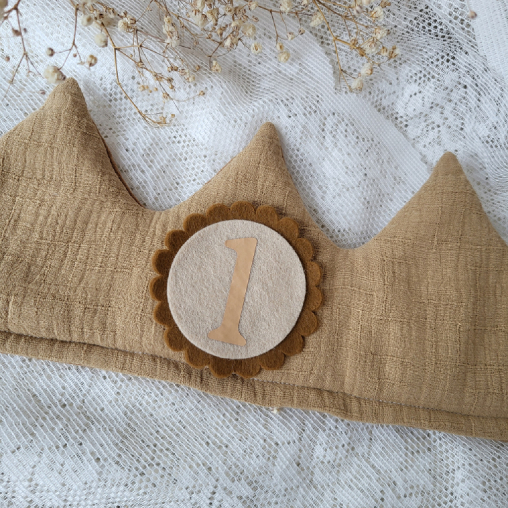 De kroon heeft 2 kanten. Je kan kiezen voor 1 kant met de bijpassende cijfers of dat je hem aan 2 kanten kan gebruiken. Je krijgt dan beide kleuren cijfers om en om. (bijvoorbeeld cijfer 1 met buitenrand bruin en cijfer 2 met buitenrand beige etc.) Zo heb je toch elk jaar een andere kroon.