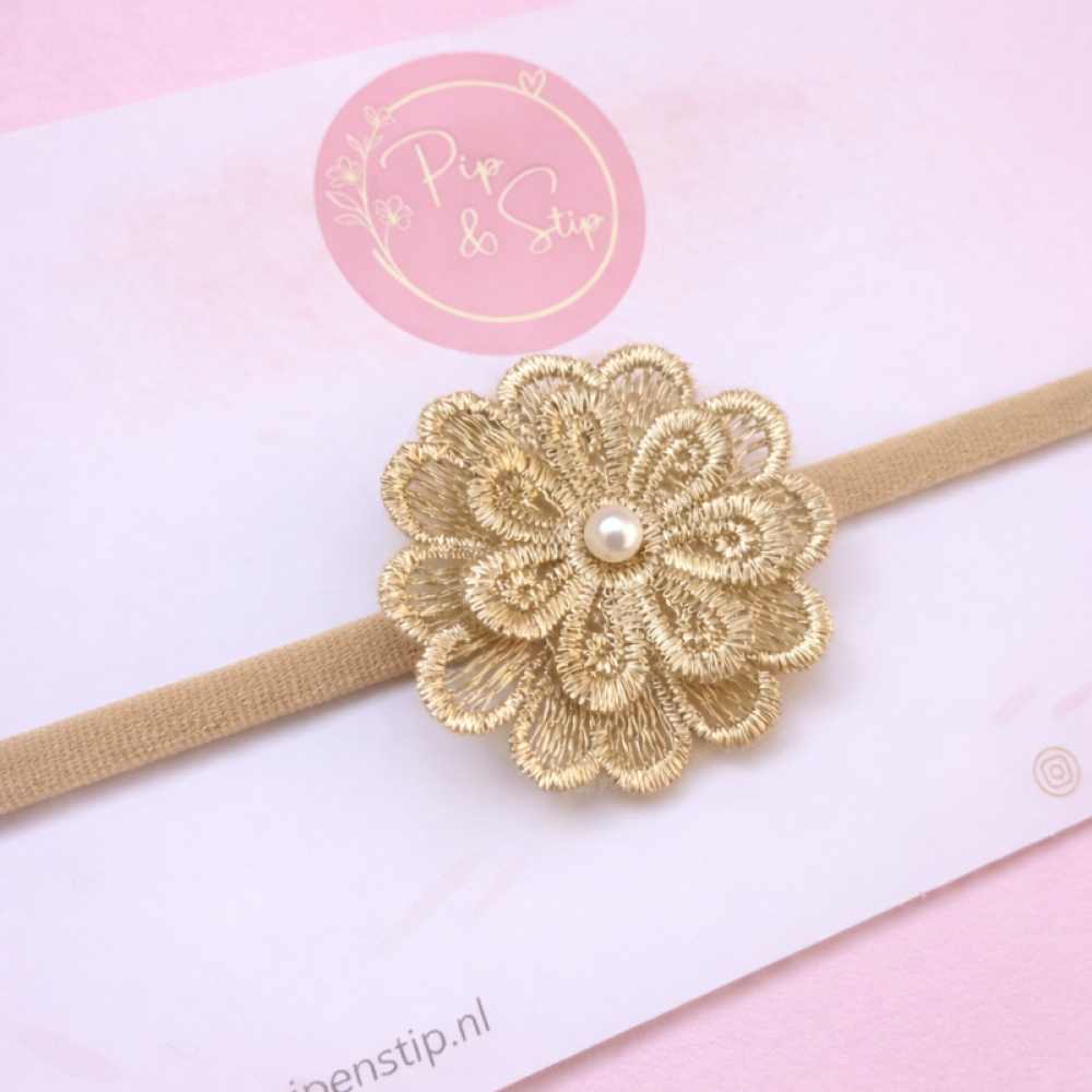 Haarbandje Lace Flower Beige