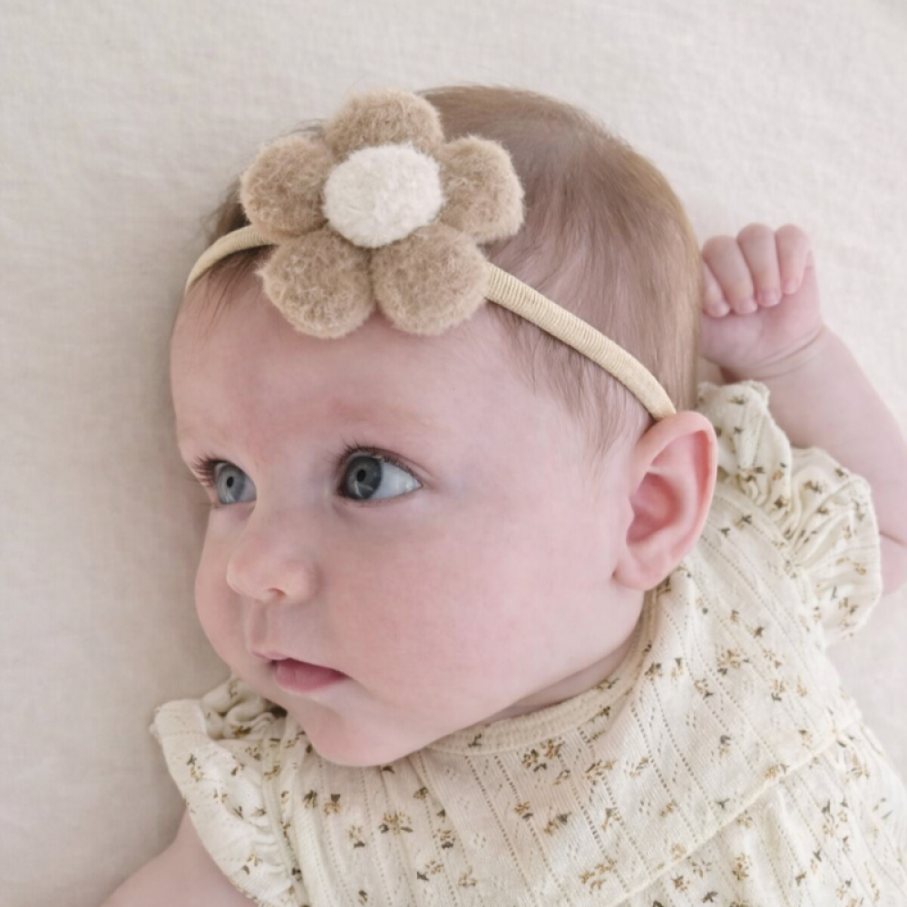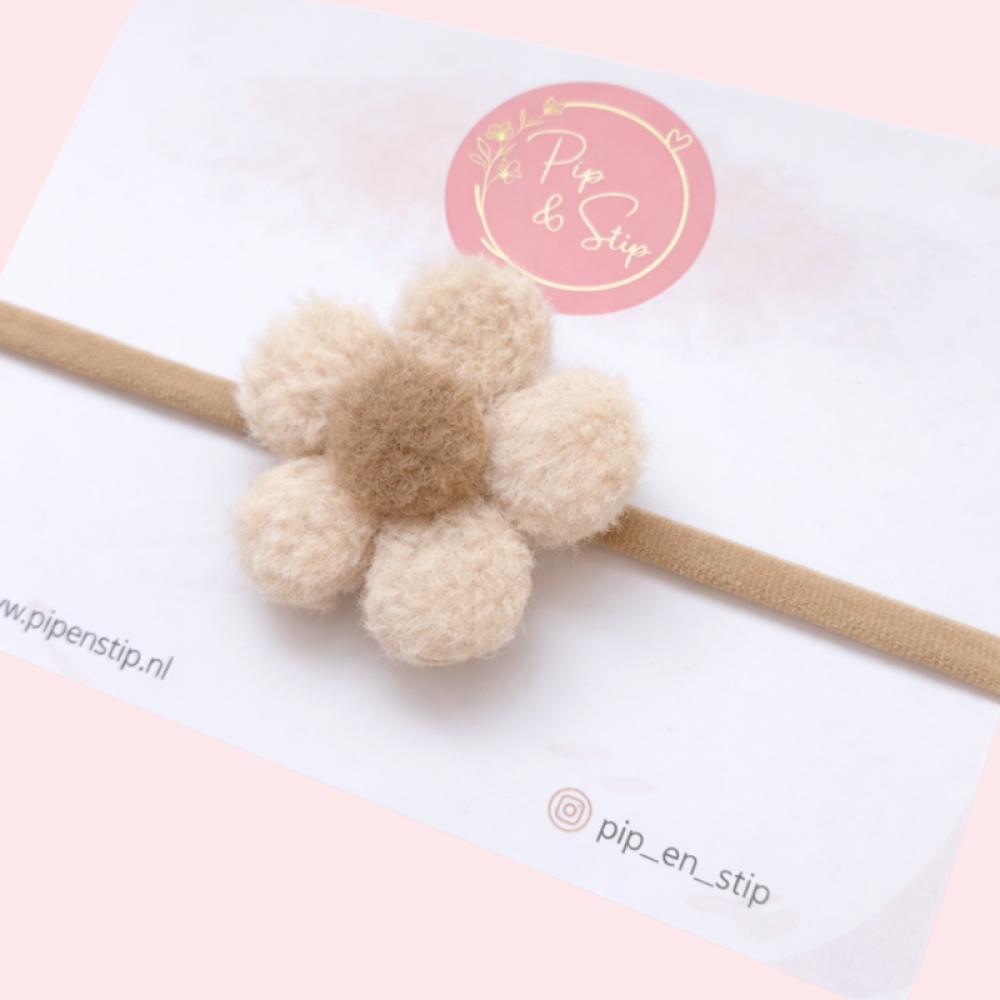De haarband is afgewerkt met een mooie zachte bloem van ongeveer 5 cm. De bloem is lekker vol en valt mooi op, zonder te groot te zijn voor kleine gezichtjes.