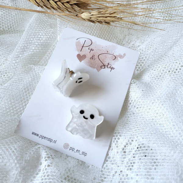 Voeg een vleugje Halloween-magie toe aan je kapsel met deze superleuke spookjes haarklemmen! Perfect voor feestjes, trick-or-treat of gewoon om in de herfst in stijl voor de dag te komen.