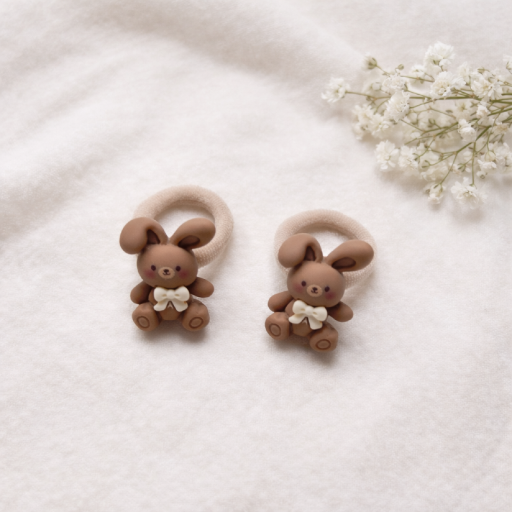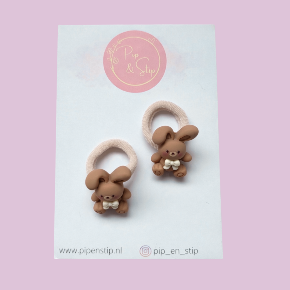 Deze schattige haarelastiekjes met haasje maken ieder kapseltje extra lief en vrolijk. De kleine konijntjes met hun zachte kleurtjes en strikje zijn met de hand gemaakt en geven een speelse, lieve uitstraling. Perfect voor peuters en kleuters die dol zijn op dieren en helemaal leuk voor Pasen.