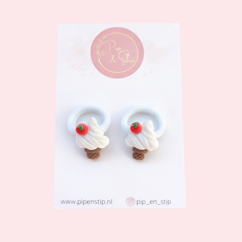 Je kan kiezen of je de ijsjes op een wit, lichtbeige of lichtroze elastiekje wilt.