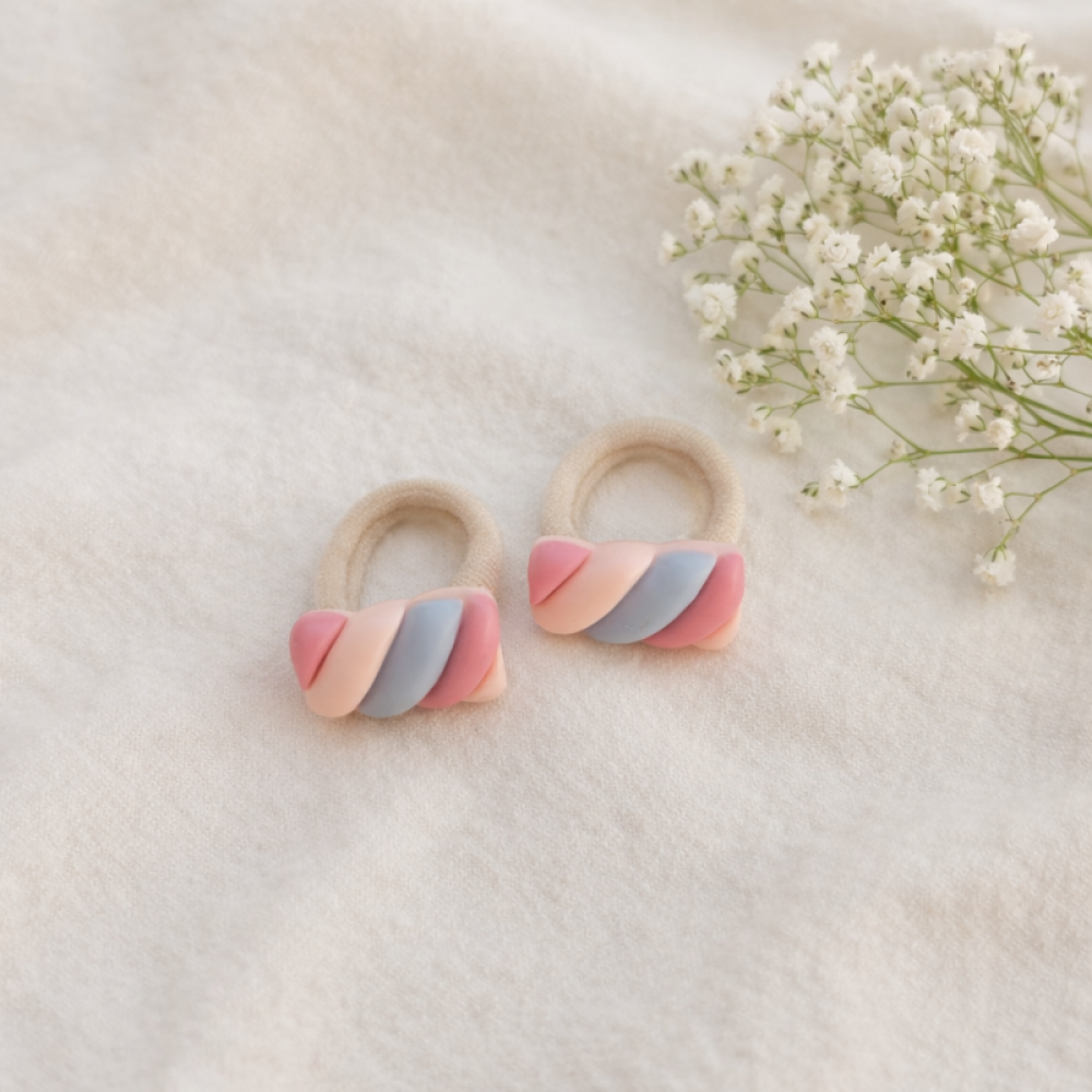 De zachte stoffen elastiekjes van ongeveer 2,5 cm groot zijn ideaal voor de kleinste staartjes, vlechtjes of knotjes en zitten comfortabel zonder te trekken.