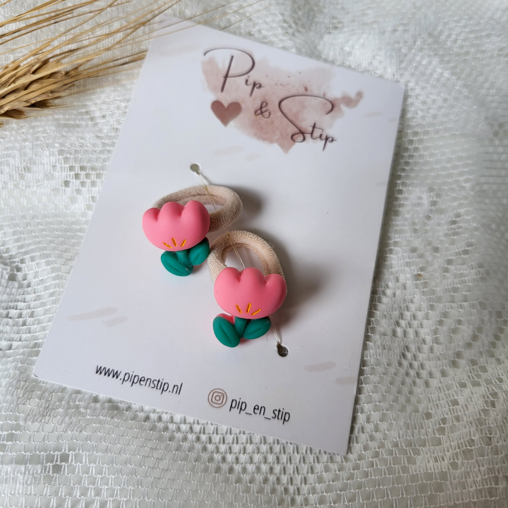 Deze lieve mini haarelastiekjes met een tulpje maken je outfit nog vrolijker!