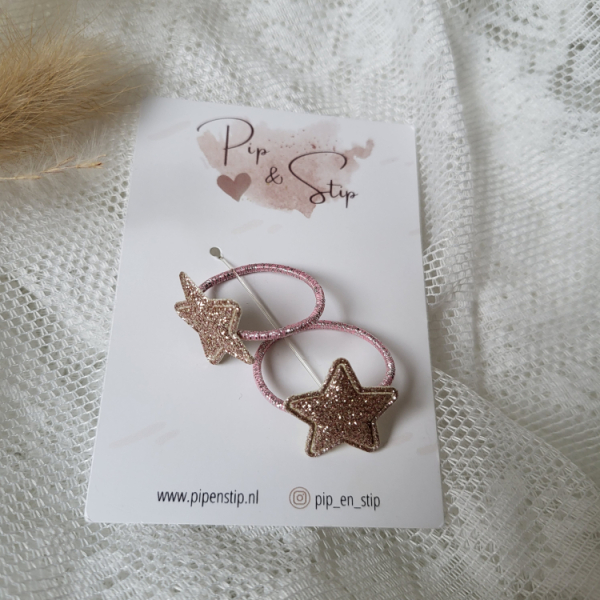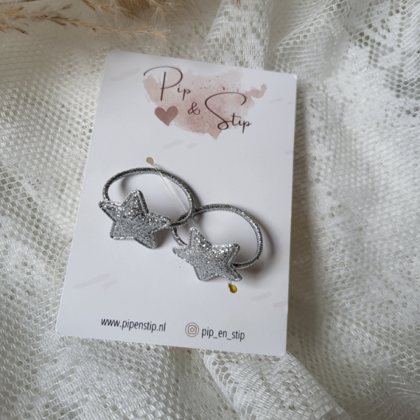 Setje van 2 midi haarelastiekjes met een glitter sterretje.
