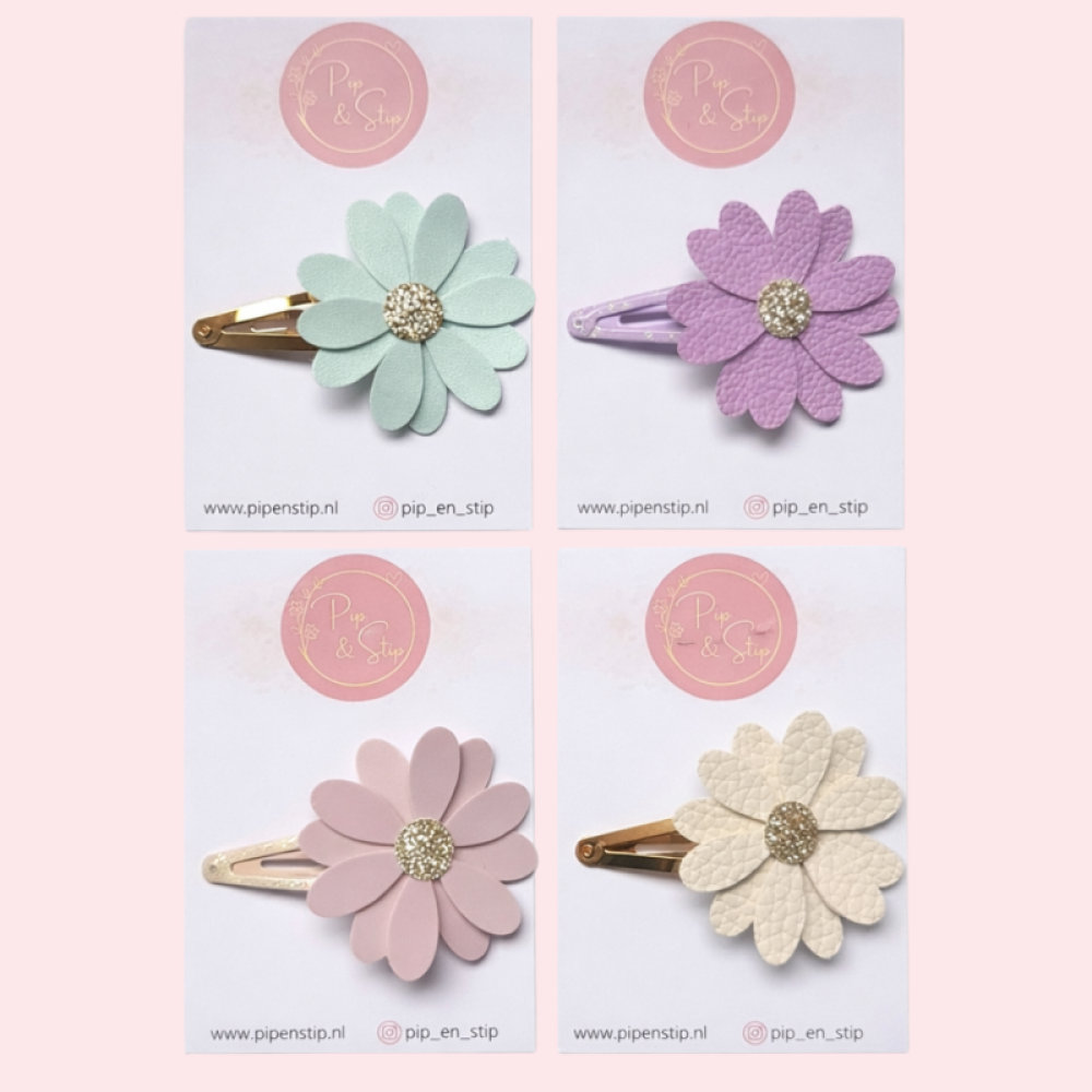 De haarspeld is stevig, blijft goed zitten in kinderhaar en is comfortabel om te dragen. Verkrijgbaar in vier prachtige kleuren: zand en mint op een goud klikklak speldje, lila op een lila speldje met glitters en roze op een roze speldje met glitters. Een schattig haaraccessoire voor peuters en kleuters dat moeiteloos past bij een lente outfit of zomerse jurk.