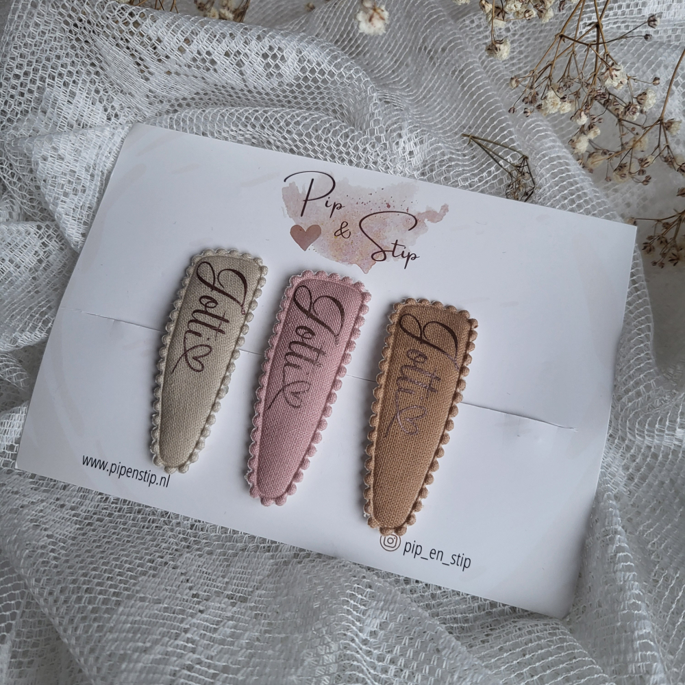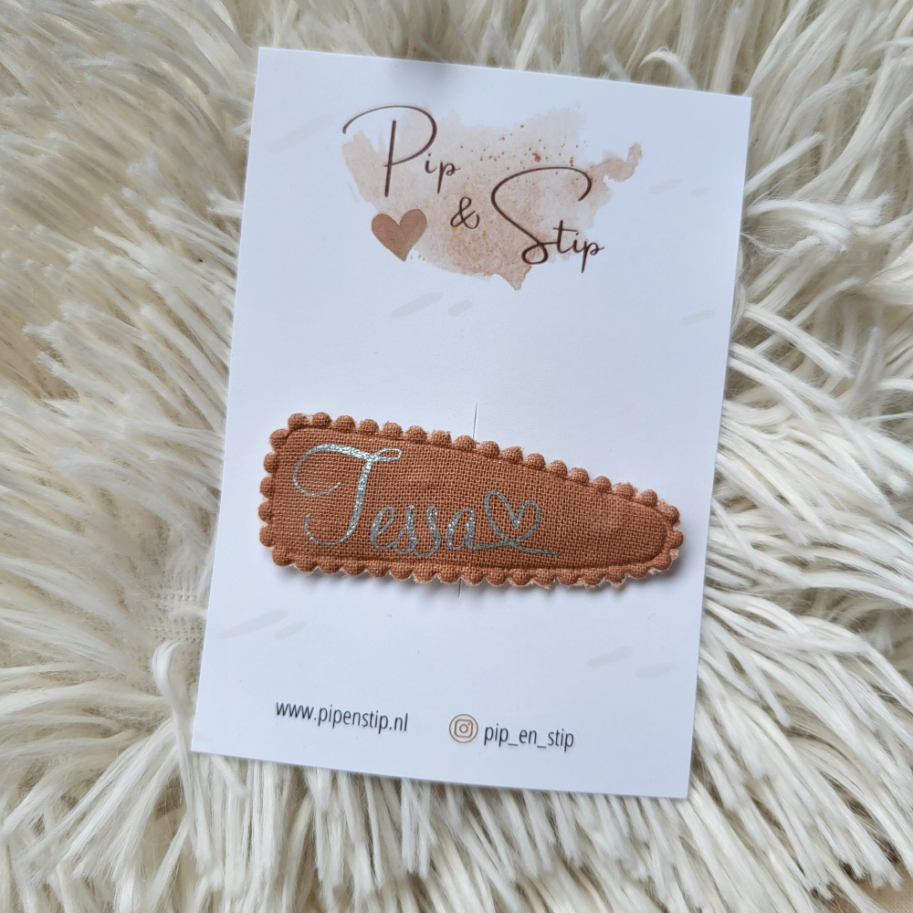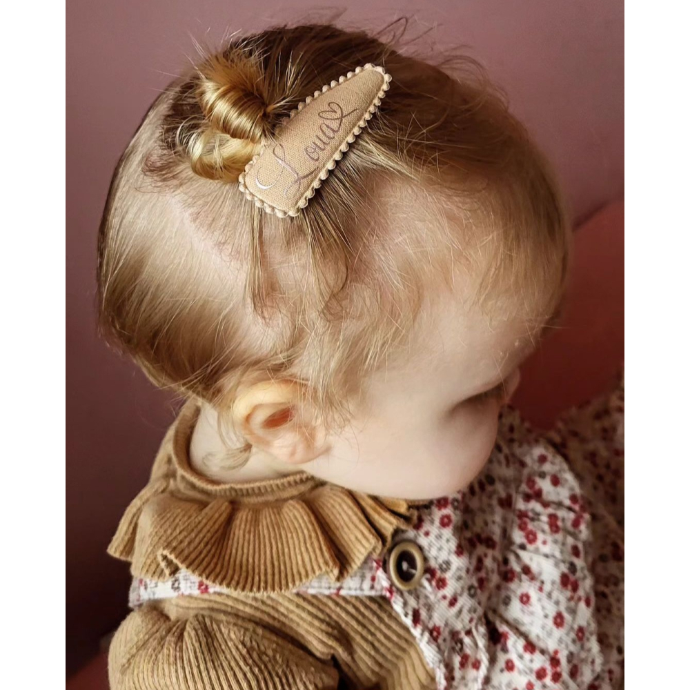 Hoe leuk! Je kleine meid met een haarspeldje met haar prachtige eigen naam!