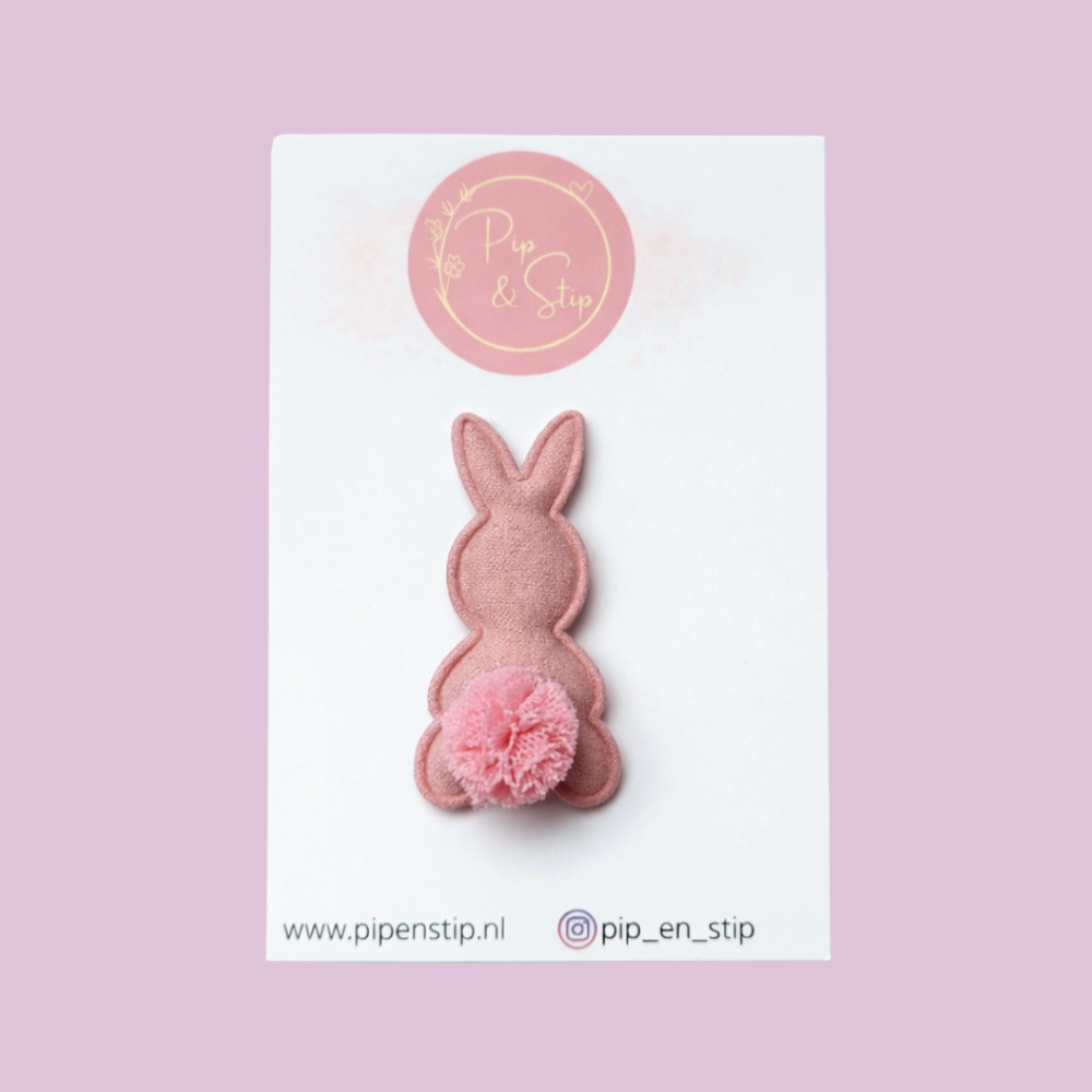 Het konijntje is ongeveer 5 cm groot en staat prachtig bij een staartje, vlechtje of knotje.