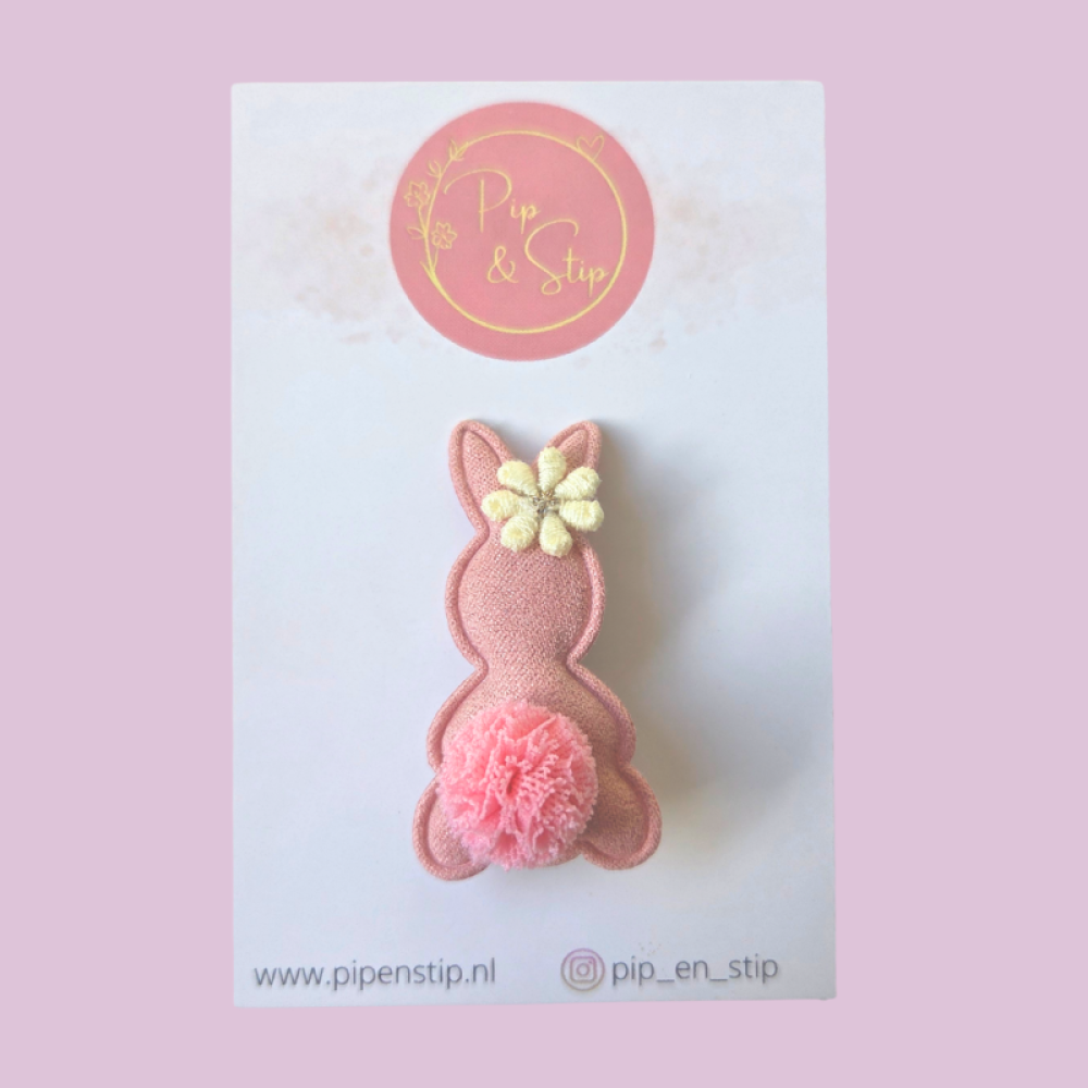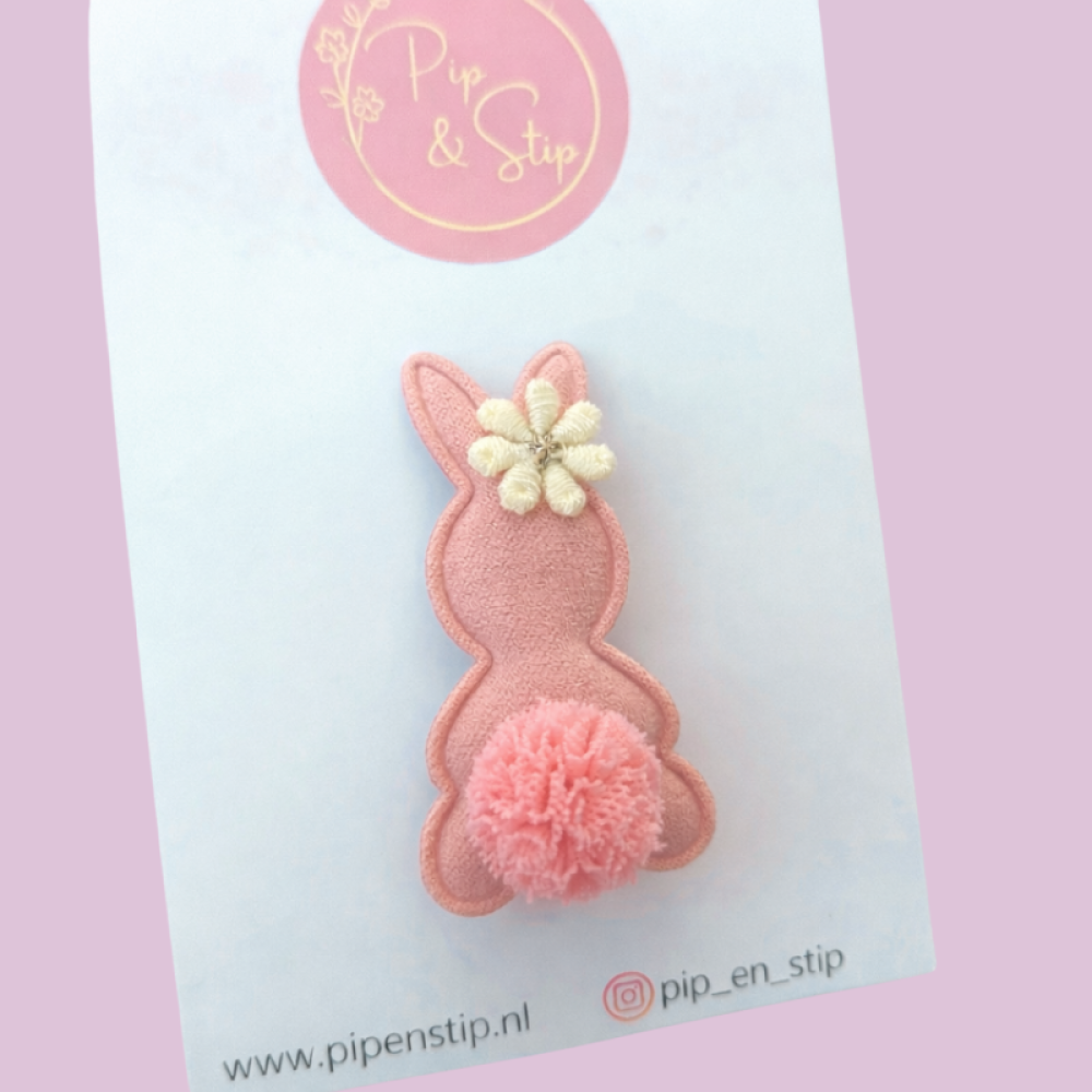 Een alligator haarspeldje met een roze konijntje met lief staartje.