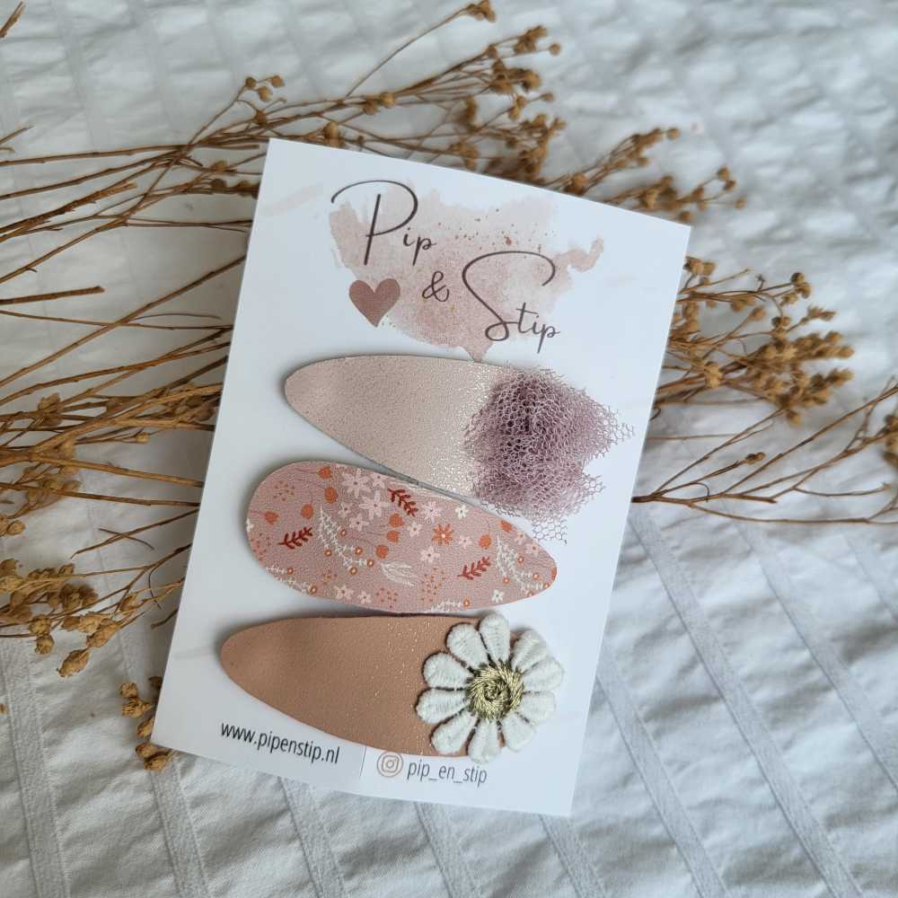 Setje van 3 diverse haarspeldjes in roze tinten.