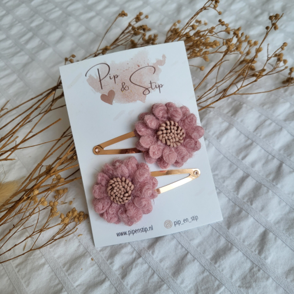 Setje van 2 haarspeldjes met wollige fluffy bloemen.