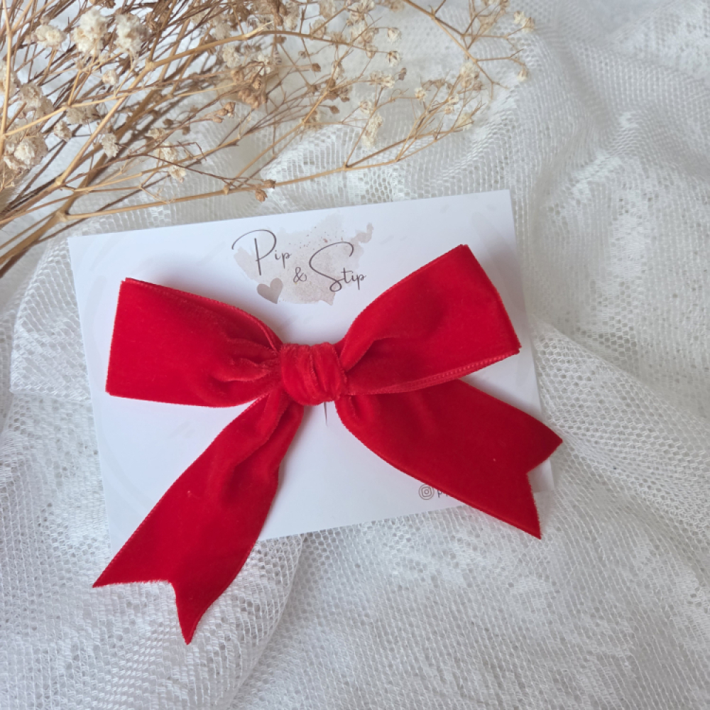 De strik is gemaakt van zacht fluwelen lint in een mooie felle kleur rood en heeft een warme, zachte uitstraling die perfect past bij Valentijnsdag of een speciale gelegenheid.