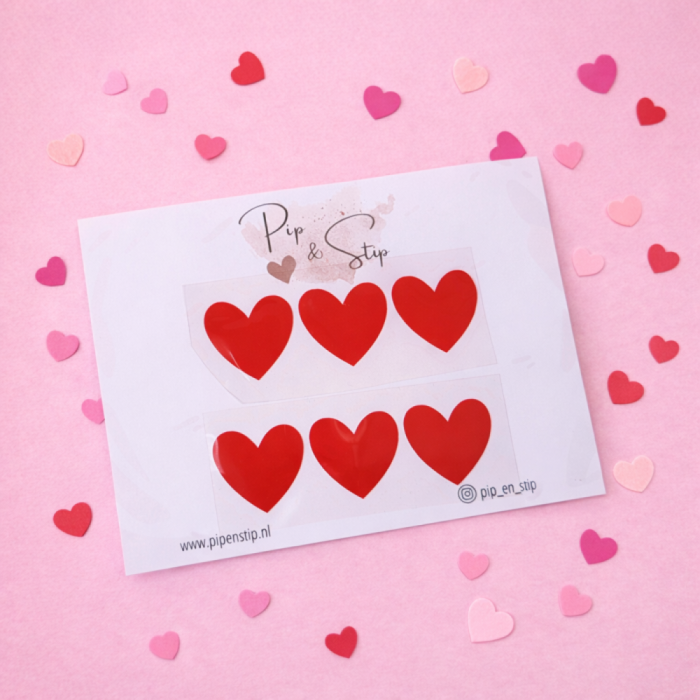 De set bestaat uit zes rode hartjes van ongeveer 2,5 cm groot. Door het compacte formaat zijn ze subtiel, maar zorgen ze toch voor een speels en warm accent op kleding voor zowel kinderen als volwassenen. Ideaal om creatief aan de slag te gaan en een uniek kledingstuk te maken.