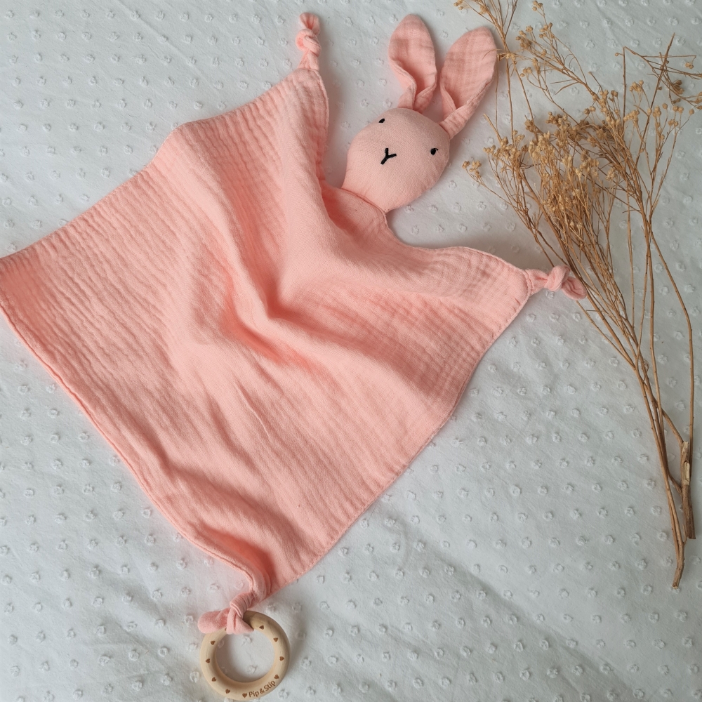 Super lief knuffelkonijntje! Je kan er een bijtring (exclusief) of een speen aan vast maken. Zo heeft je kindje een heerlijk knuffelkonijntje om mee te knuffelen.