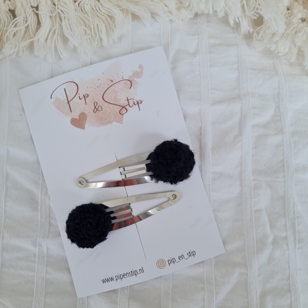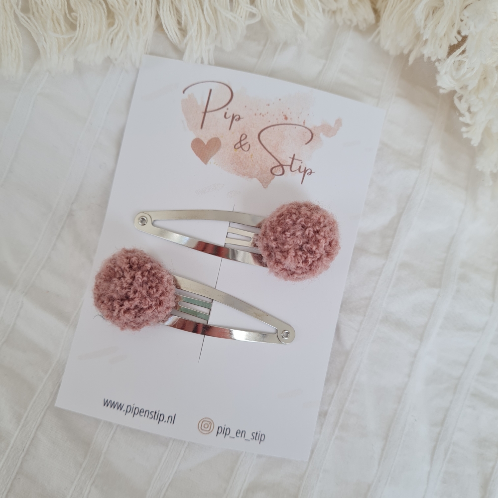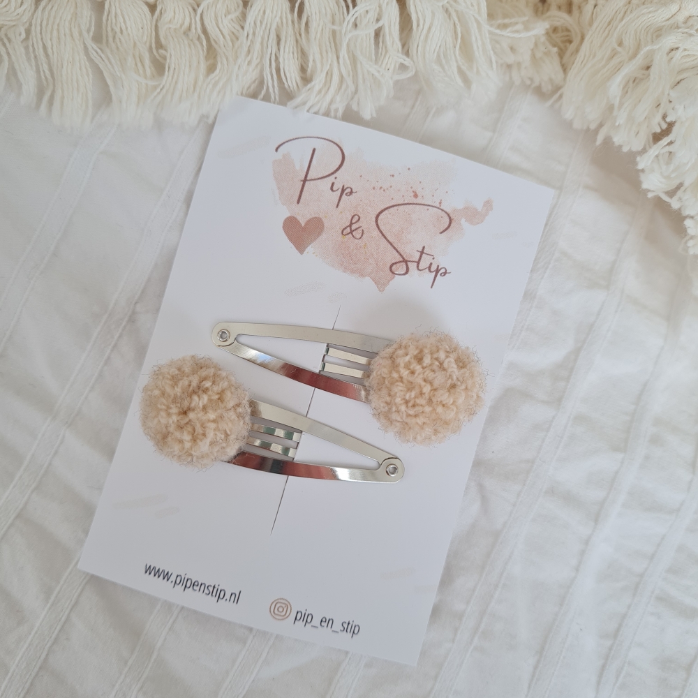 Setje van 2 haarspeldjes met teddy pompoms.