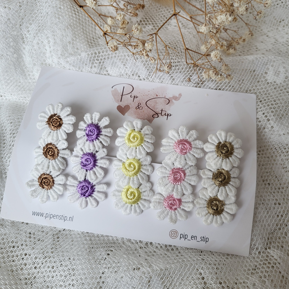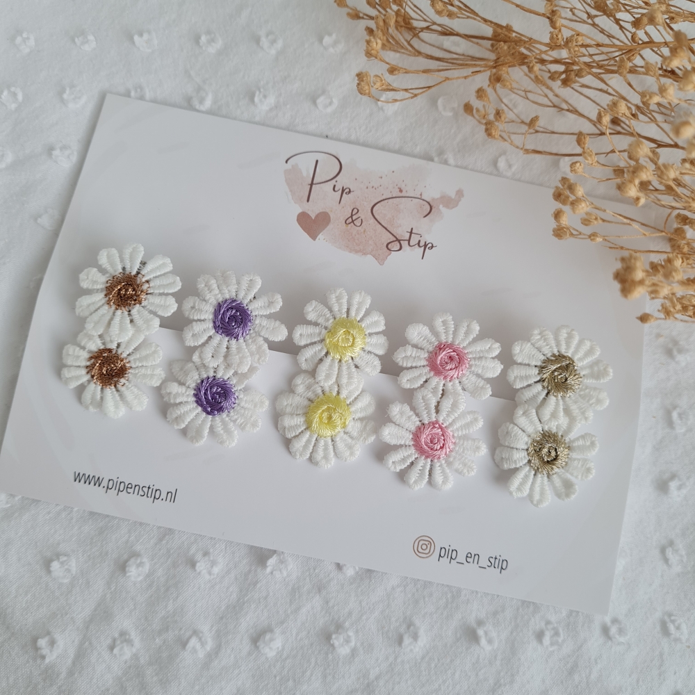 5 super lieve alligator speldjes met diverse kleuren madeliefjes.