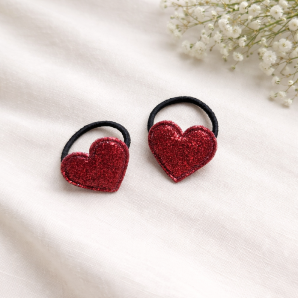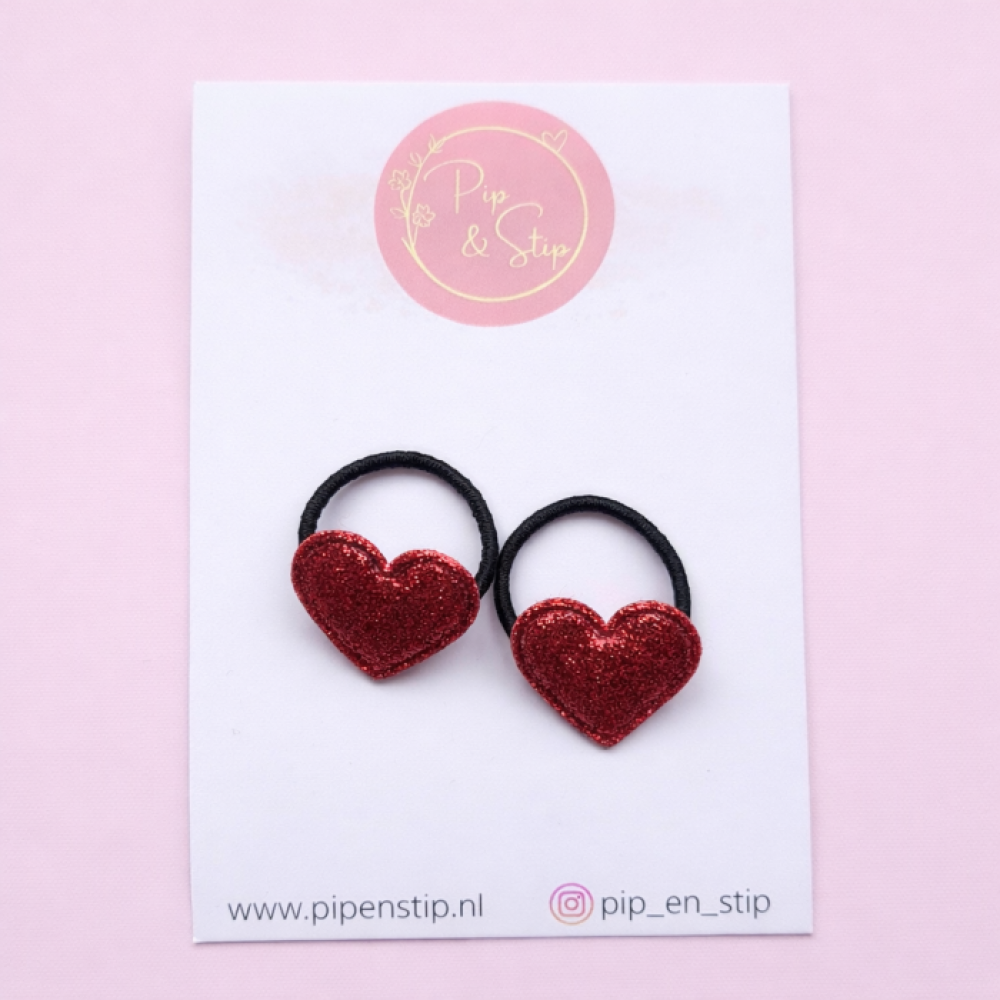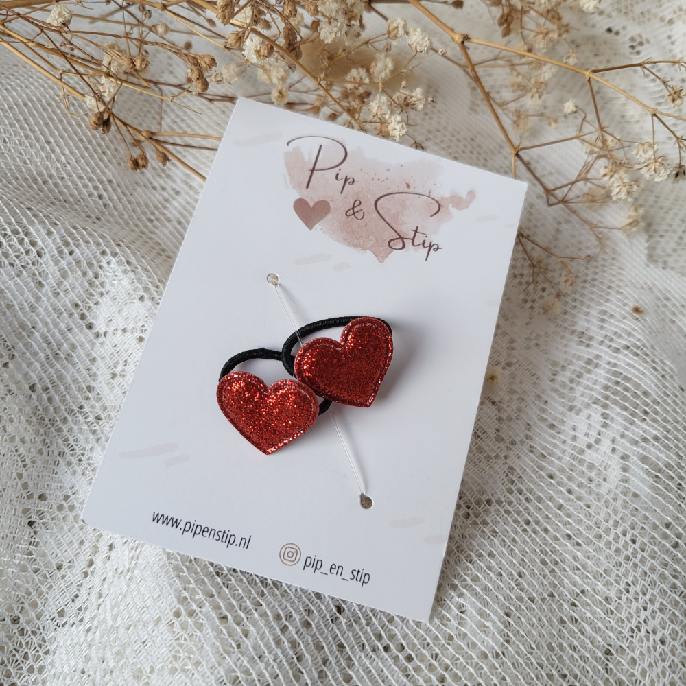 Love is in your hair met deze lieve mini haarelastiekjes met een rood glitter hartje!