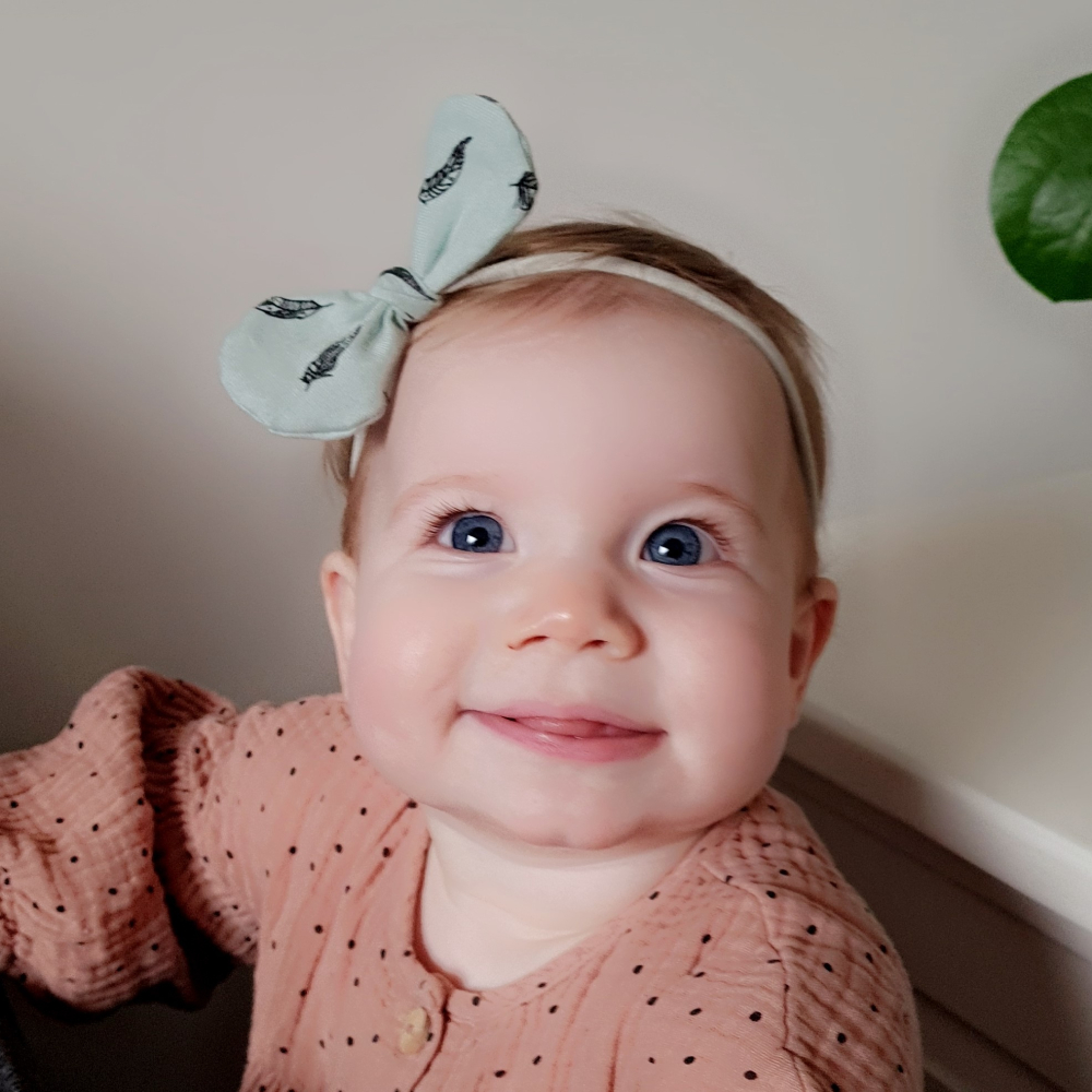 Het haarbandje is rekbaar, waardoor het elke baby, peuter of kind past.