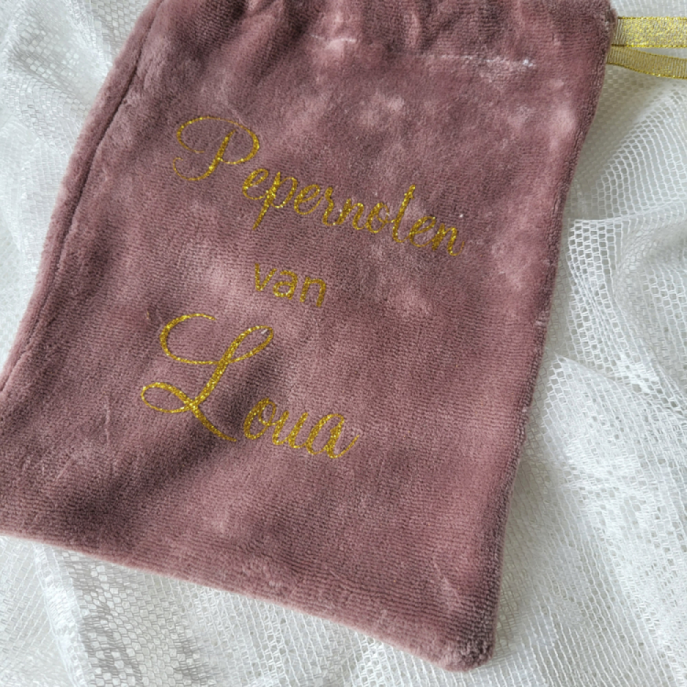 Dit handgemaakte pepernotenzakje kan je perfect matchen met je Pietenmuts en is helemaal naar wens te personaliseren! Het pepernotenzakje heeft een handig koord om het zakje mee dicht te maken. Het pepernootzakje maak je extra persoonlijk door je eigen naam erop te laten bedrukken.