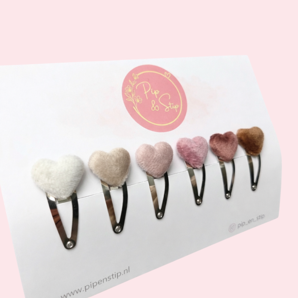 Love is in your hair met deze lieve haarspeldjes met een gekleurd fluweel hartje!