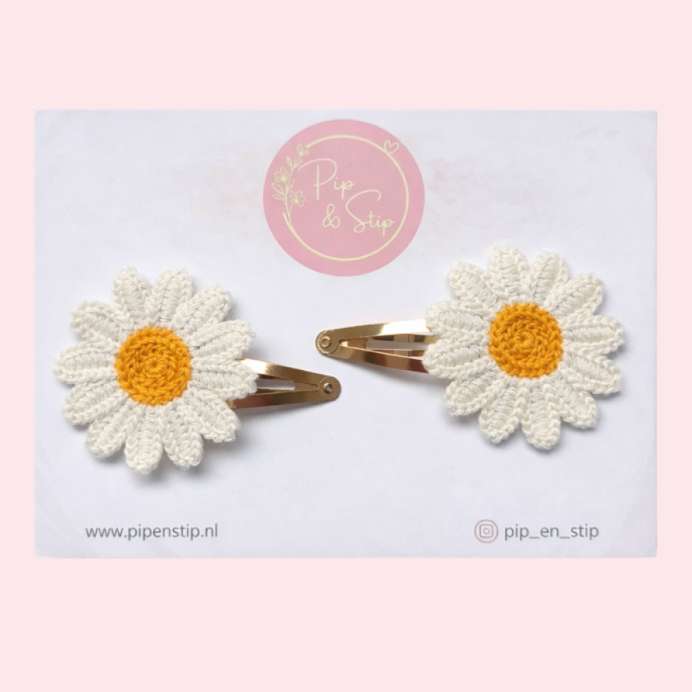 Dit handgemaakte klikklak haarspeldje met zonnebloem zijn een echte eyecatcher. De vrolijke bloem in zachte kleuren staat super leuk bij je lente of zomer outfit.