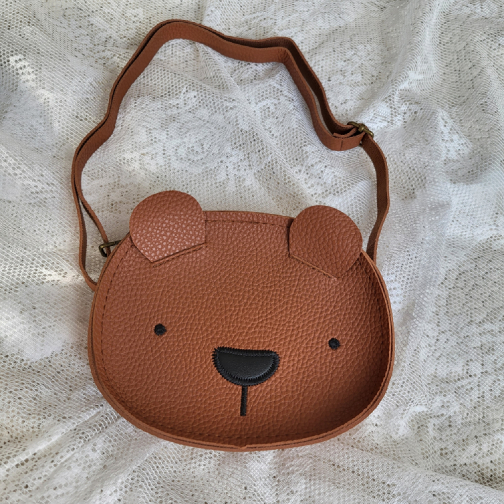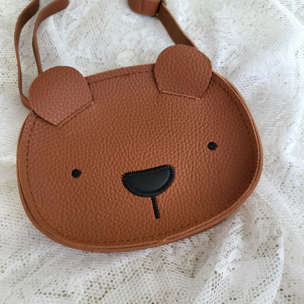Een lederlook schoudertasje in de vorm van een beer.