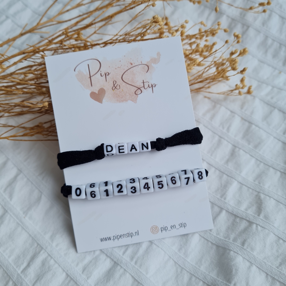 Telefoonnummer Armbandje Zwart