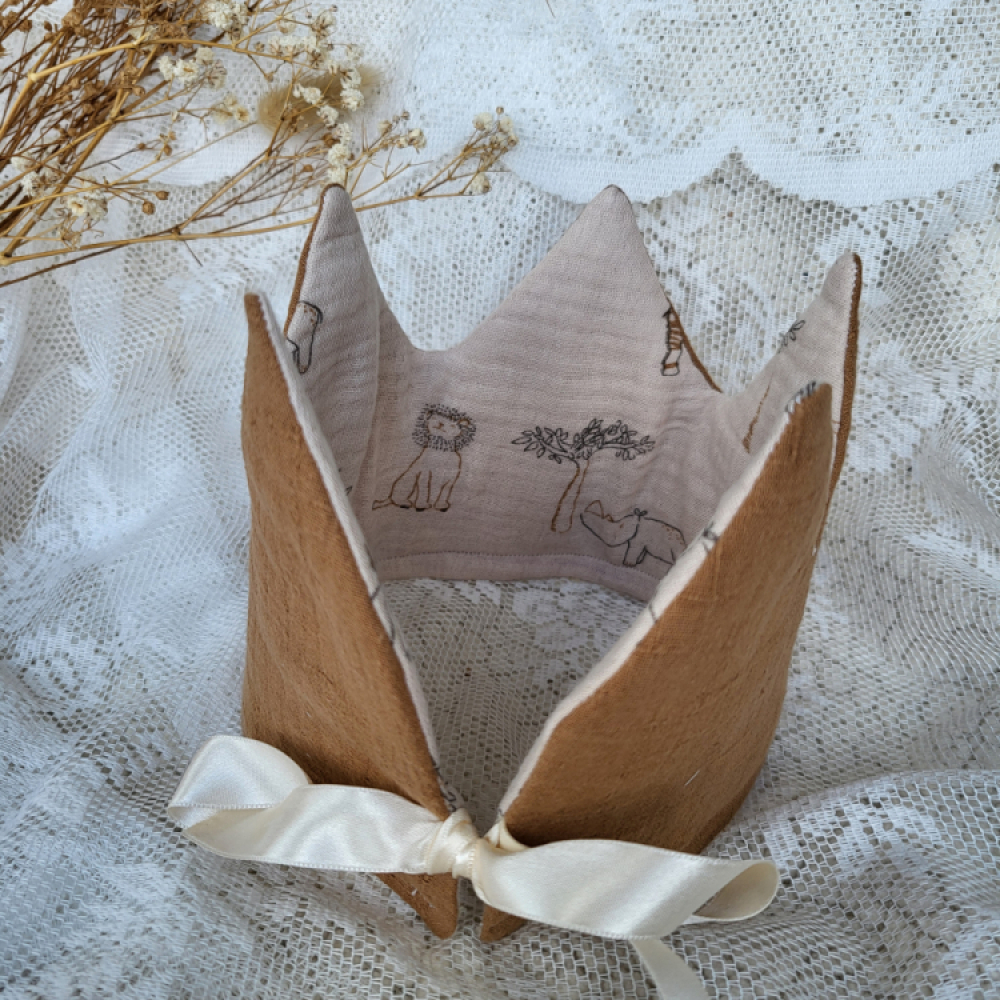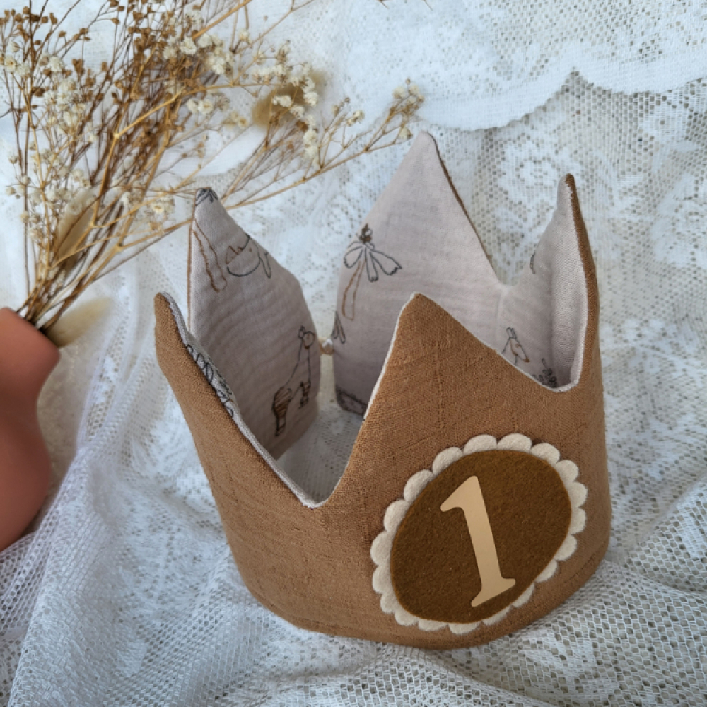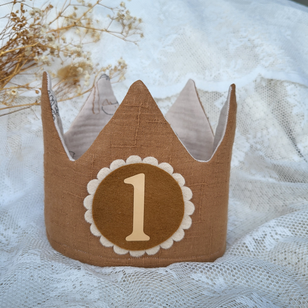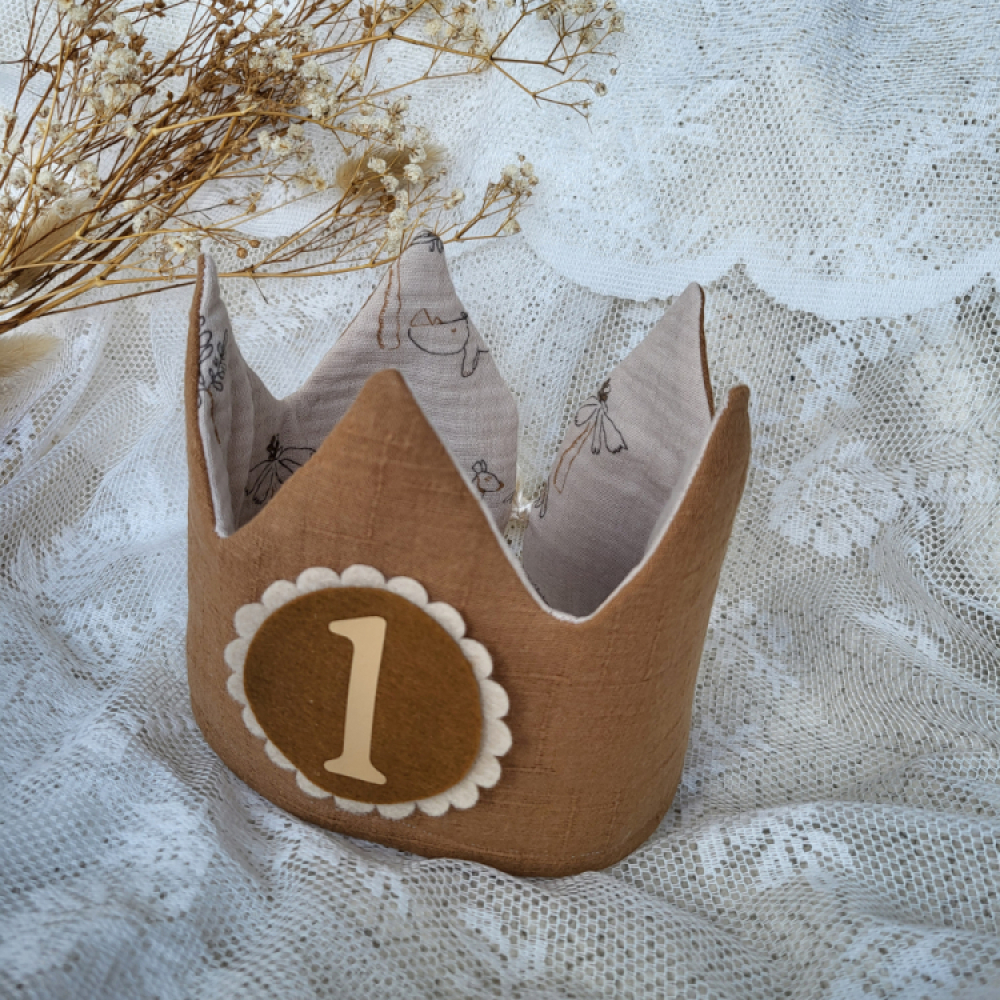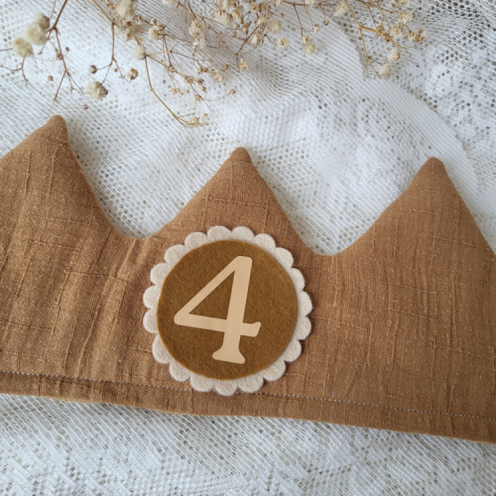 Deze vrolijke verjaardagskroon van bamboe stof mokka (stof 20) en bamboe stof bruin (stof 21) maakt het feest compleet!