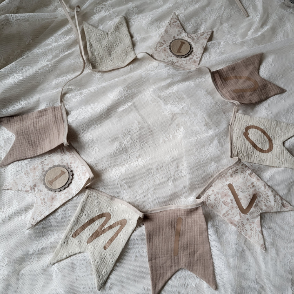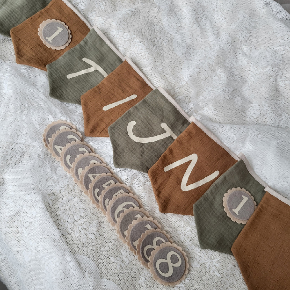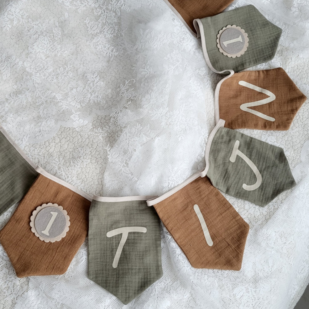 De vlaggenlijn is gemaakt van zachte, duurzame stoffen en groeit mee met je kindje dankzij de verwisselbare cijfers. Hij kan niet in de wasmachine, maar blijft mooi schoon met een vochtig doekje. Een persoonlijke, handgemaakte verjaardagsslinger die ieder feestje extra bijzonder maakt!