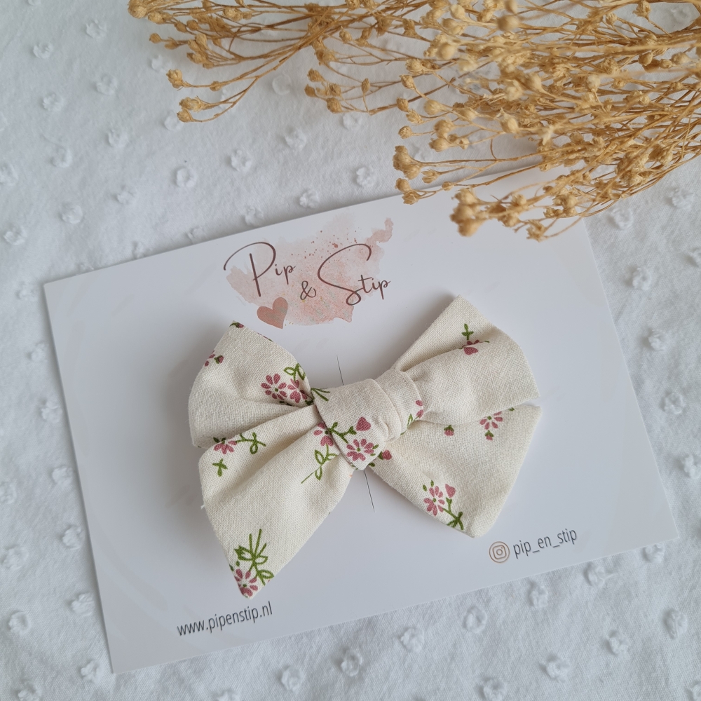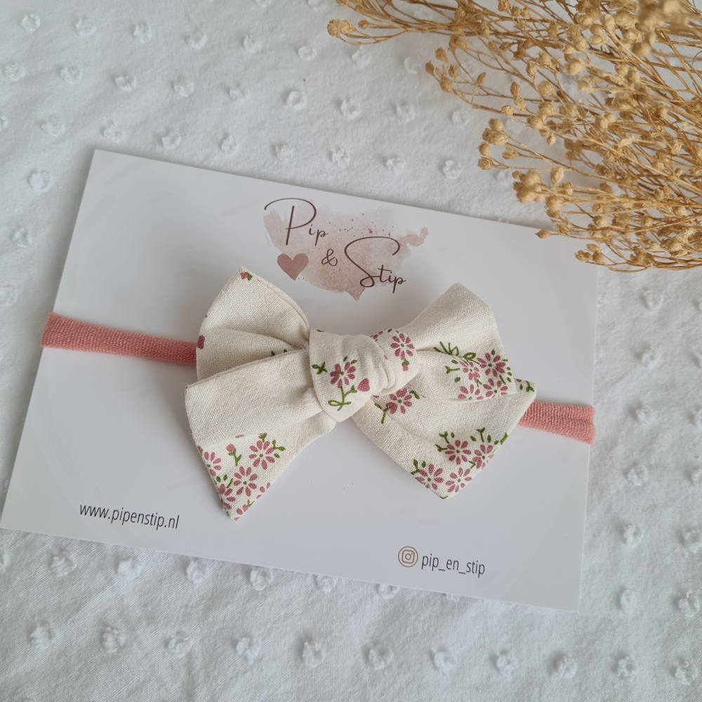 Verkrijgbaar als strik met alligator speld (voor kindjes met wat meer haar) en als haarbandje.